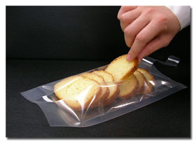 カットし容易に開封でき、内容物が容易に取り出せる袋を開発しました。